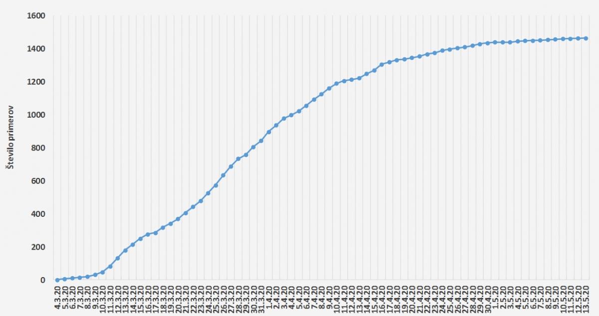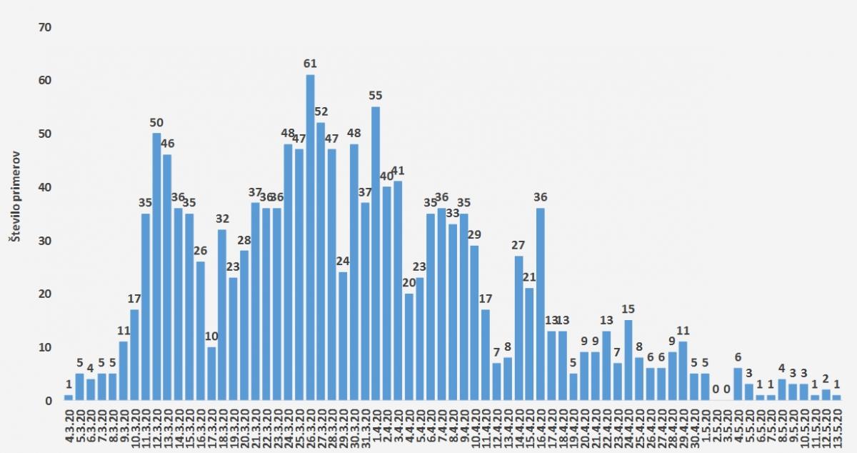 Do 13. 5. 2020 do 24. ure je bilo opravljenih 68.046 testiranj, od tega je bilo 1.474 pozitivnih testov.