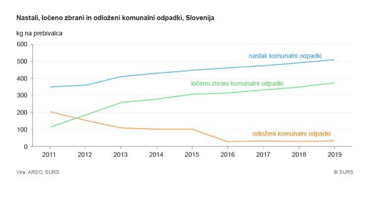 Po podatkih Statističnega urada RS je v Sloveniji v lanskem nastalo 8,4 milijona ton vseh vrst odpadkov, od tega 60 % gradbenih odpadkov. Komunalnih odpadkov je bilo skoraj 1.075.000 ton (ali 13 % od vseh v Sloveniji nastalih odpadkov), od tega jih je bilo 73 % zbranih ločeno.