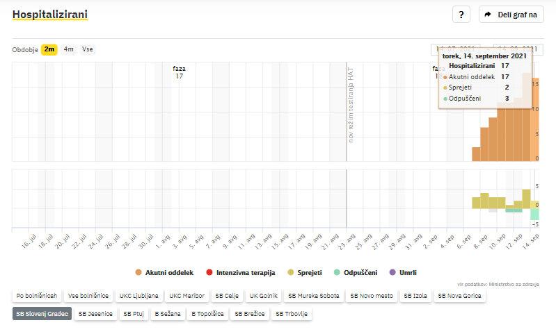Po podatkih Sledilnika za Covid-19 v SB Slovenj Gradec zdravijo 17 covidnih bolnikov.