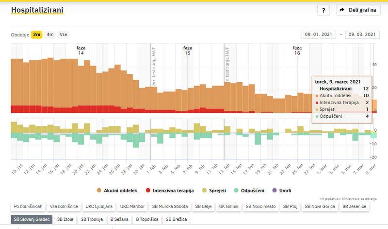 Po podatkih sledilnika v SB Slovenj Gradec zdravijo 12 covidnih bolnikov, 1 od teh potrebuje intenzivno nego.