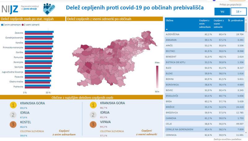Med starejšimi od 18 let je s prvim odmerkom cepljenih okoli 70 odstotkov prebivalstva, z vsemi odmerki pa okoli 67 odstotkov. S prvim odmerkom je cepljenih 80 odstotkov starejših od 50 let, z vsemi pa 78 odstotkov. Poživitveni odmerek je po aktualnih podatkih vlade doslej prejelo 557.350 ljudi.