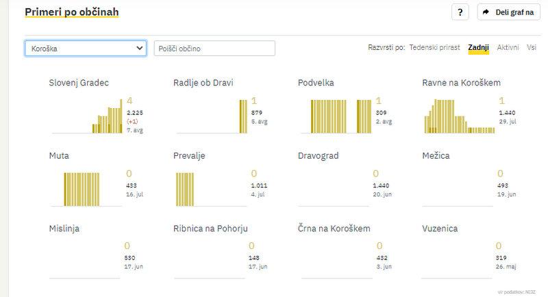 Na Koroškem so v soboto potrdili eno novo okužbe, in sicer v Slovenj Gradcu. V zadnjem tednu 4. Povprečje potrjenih primerov v zadnjih sedmih dneh tako znaša 0,57.