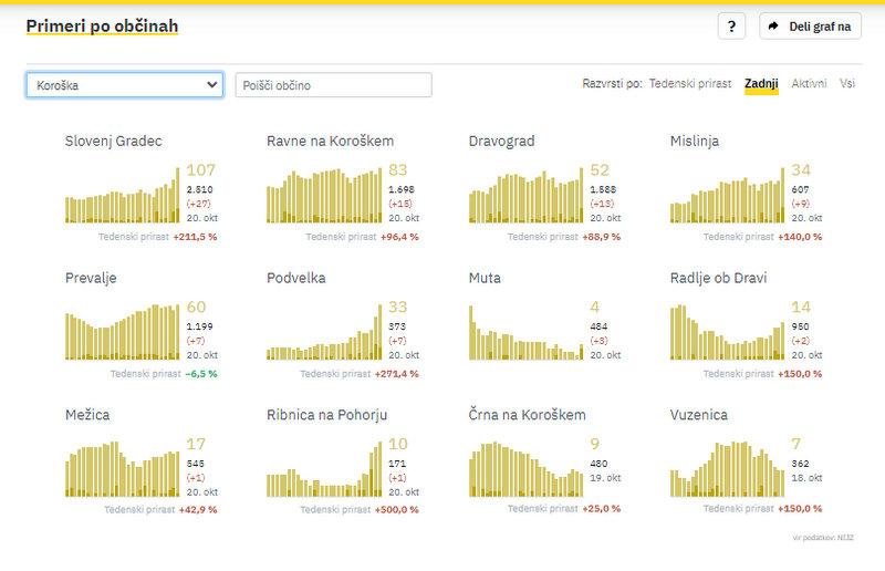 V regiji so sicer včeraj zabeležili 85 novih okužb. Največ ponovno v Slovenj Gradcu, kjer so jih potrdili še 7 več kot dan pred tem, in sicer 27. Na Ravnah na Koroškem 15, v Dravogradu 13, v Mislinji 9, na Prevaljah in v Podvelki po 7, na Muti 3, v Radljah ob Dravi 2, po eno pa v Ribnici na Pohorju in v Mežici.