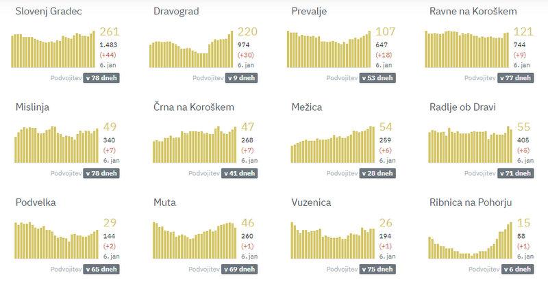 Čeprav je vladni govorec Jelko Kacin med občinami, v katerih so včeraj potrdili po največ novih okužb izpostavil Dravograd, so na Koroškem največ novih okužb zabeležili v Slovenj Gradcu, kjer so jih potrdili 44.