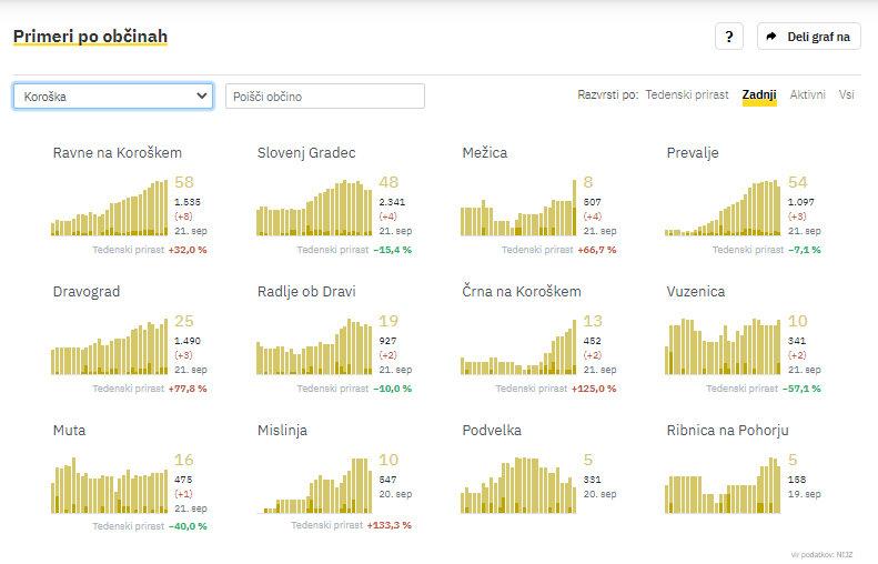 Sicer pa so včeraj v regiji potrdili 29 novih okužb. Največ na Ravnah, kjer so jih zabeležili 8, v Slovenj Gradcu in Mežici so potrdili po 4, na Prevaljah in v Dravogradu po 3, v Radljah ob Dravi, Črni na Koroškem in Vuzenici po 2, na Muti 1.