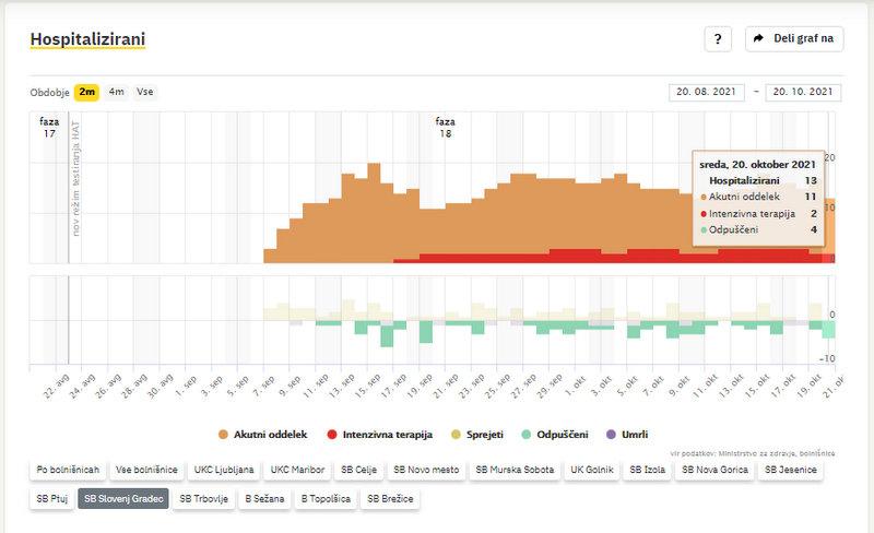 V Splošni bolnišnici Slovenj Gradec zdravijo 13 covidnih bolnikov, od teh jih 11 potrebuje intenzivno terapijo.