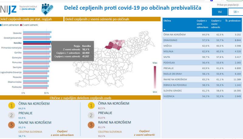 Med koroškimi občinami je največ prebivalcev precepljenih v Črni na Koroškem, sledijo pa Prevalje in Ravne na Koroškem.