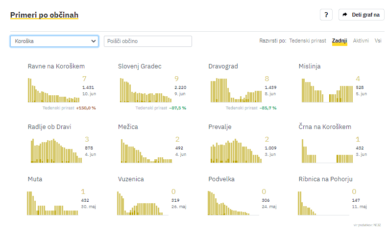 Na Koroškem so v zadnjih sedmih dneh zabeležili 8 novih okužb s koronavirusom. Sedemdnevno povprečje v regiji znaša 1.14.