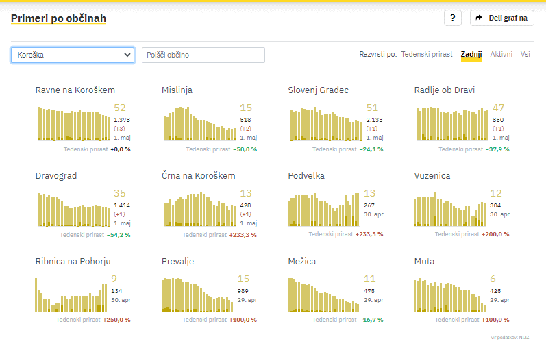 Ravne na Koroškem 3, Mislinja 2, Slovenj Gradec 1, Radlje ob Dravi 1, Dravograd 1, Črna na Koroškem 1.
