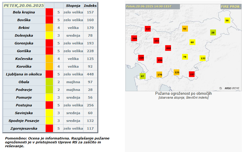 Agencija Republike Slovenije za okolje (ARSO) je zaradi visokih temperatur, dolgotrajne suše in povečane nevarnosti vžigov razglasila veliko požarno ogroženost naravnega okolja za celotno Slovenijo.