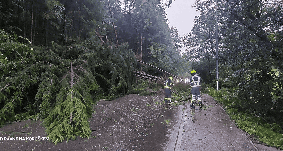 Podiralo je drevesa, ponekod so brez elektrike, na širšem območju Mežiške doline je ponekod padala tudi toča.