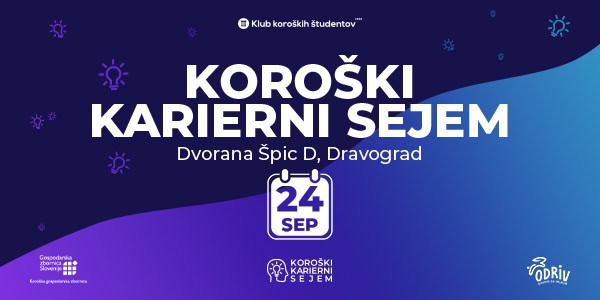 Klub koroških študentov, Koroška gospodarska zbornica in Zavod za mlade - ODRiV, z velikim navdušenjem napovedujemo drugi Koroški Karierni Sejem, ki bo potekal 24. septembra 2024 v Športni dvorani ŠPIC D. Dogodek, ki se je lani izkazal za izjemno uspešnega in pomembnega za razvoj kadrov v naši regiji, bo letos še bolj obsežen in pester.