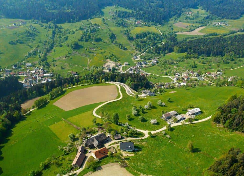 Le slabe 3 km iz Prevalj leži v majhni kadunji na nadmorski višini 550 m – 675 m vas Leše.