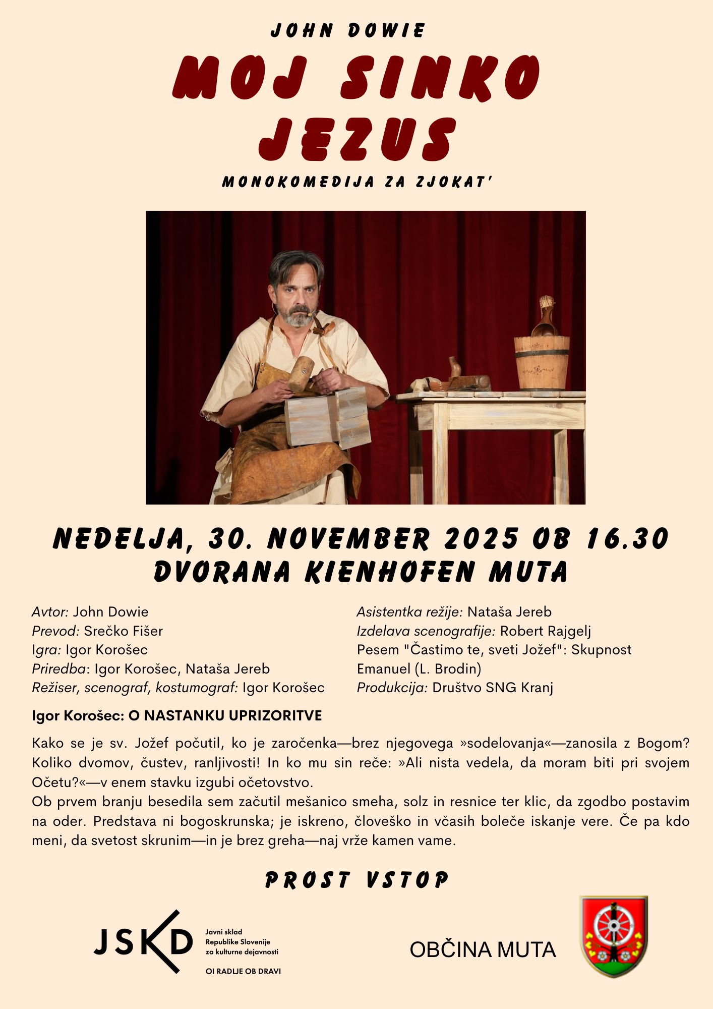 Le še dober mesec nas loči do najlepšega in najbolj prazničnega dela leta, ko se bo v decembru pričel adventi čas. Ravno, ko bomo vstopali v advent, pa vas bo na Muti nasmejala dodobra nasmejala monokomedija Moj sin Jezus.