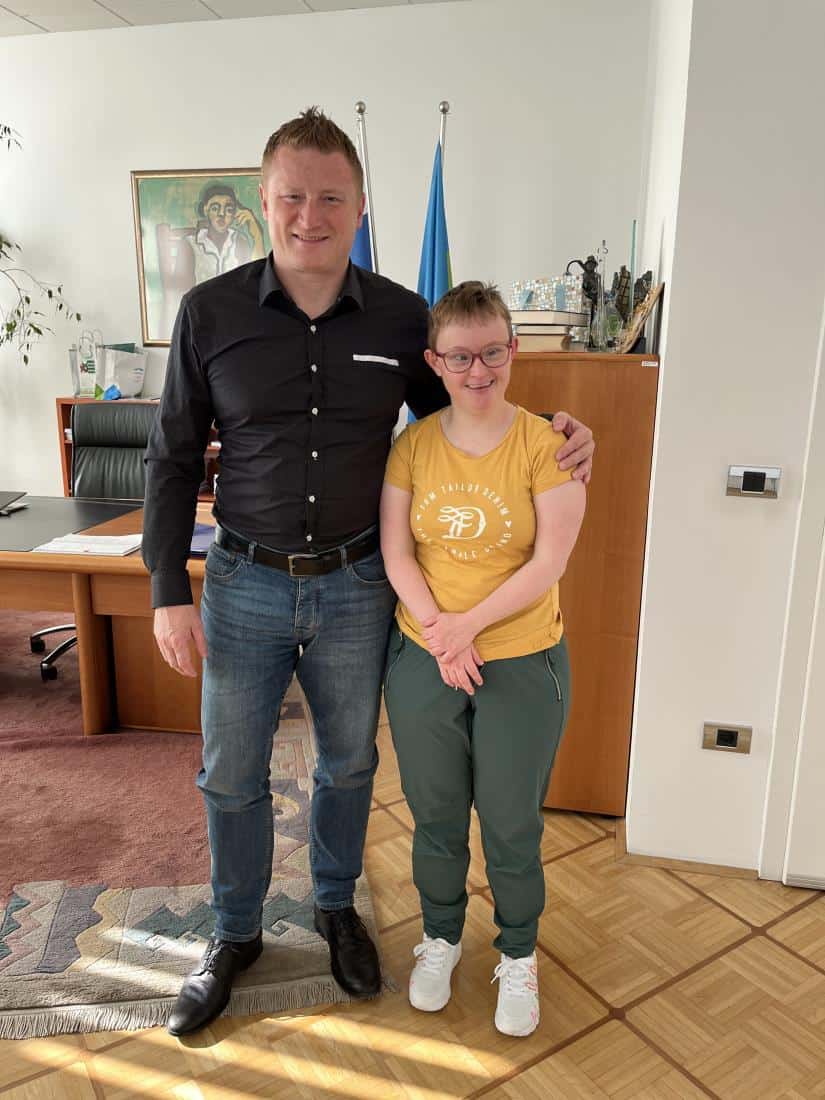 Eva je prijetno dekle, ki se rada smeje. Je prava specialistka za zdravo prehrano in pove, da jih bo čez nekaj let štela 40. Je uporabnica storitve VDC Ravne, dislocirane enote CUDV Črna, ki vselej rada pomaga. In ni stvari, ki se je ne loti. Preden se njihovo sodelovanje z delovnimi obveznostmi začne, jo je župan Občine Ravne na Koroškem dr. Tomaž Rožen povabil na kavo, da bo njeno počutje v novem kolektivu čim boljše.