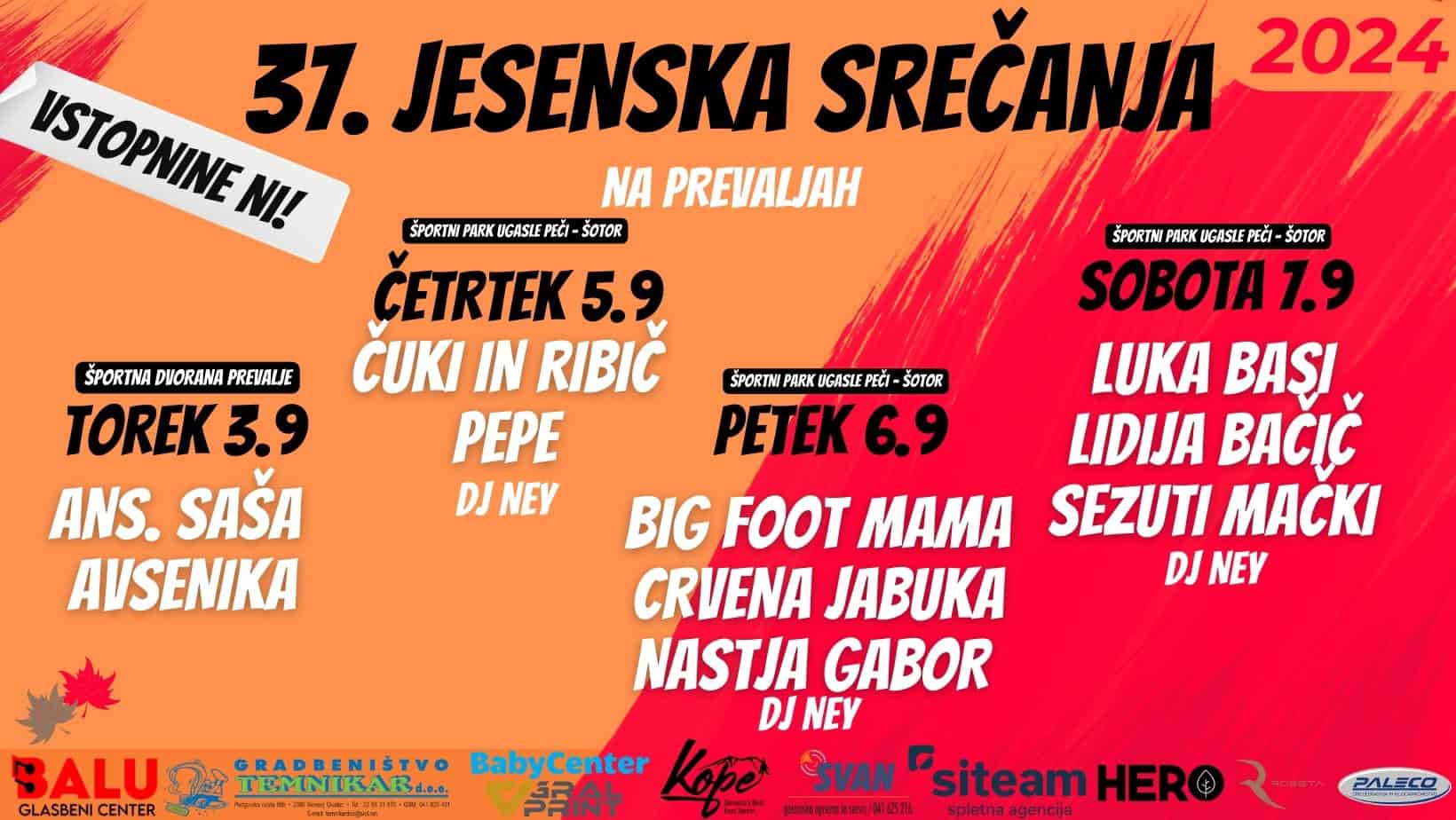V soboto, 7. septembra, pa bodo za nepozaben zaključek letošnjih jesenskih srečanj poskrbeli Sezuti Mački, Luka Basi in Lidija Bačič.