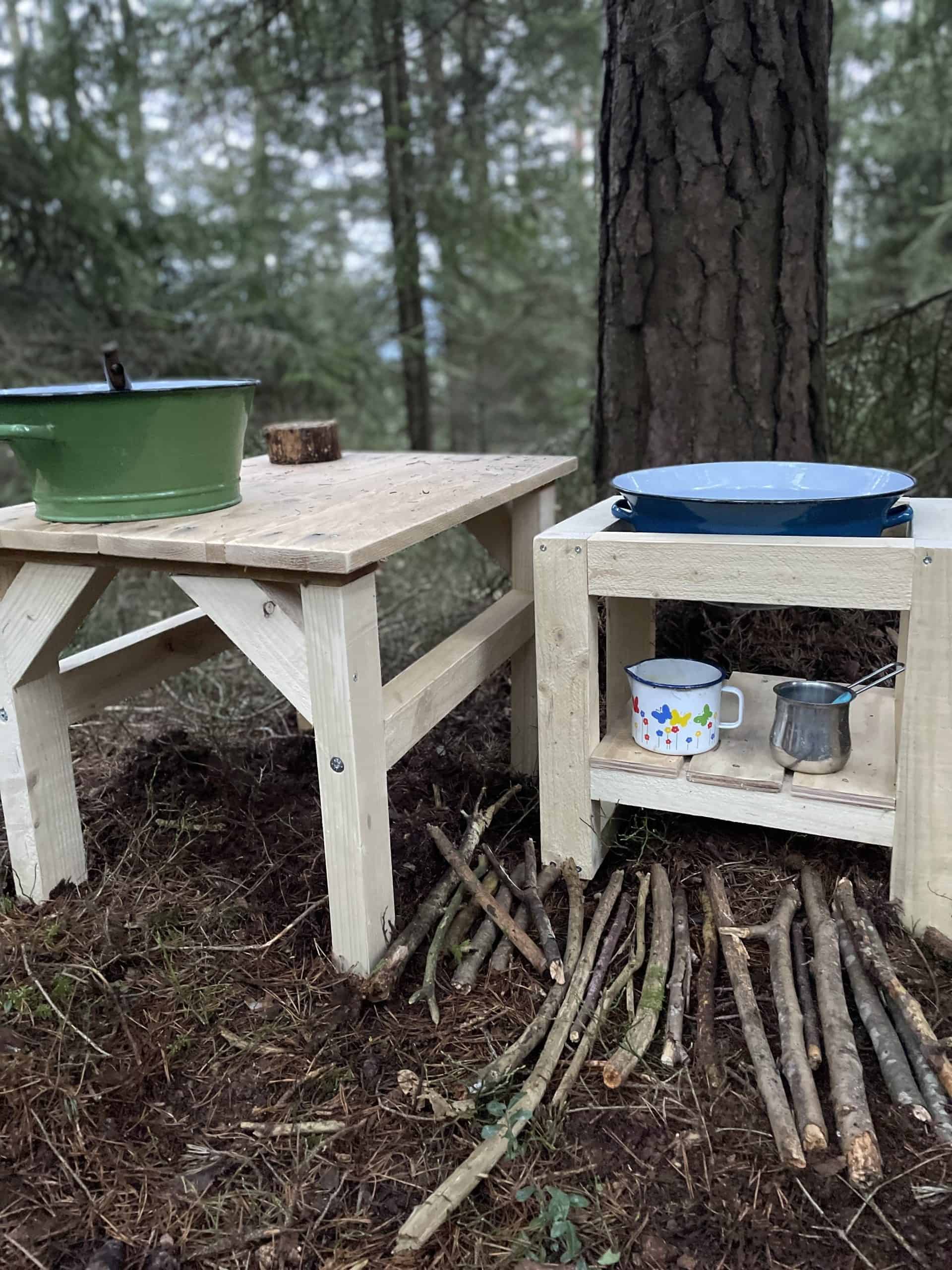 - Peskovnik iz gozdnih materialov: igra z mahom, vejicami in lubjem.