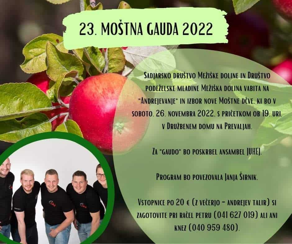 Prvo Moštno gavdo so organizirali davnega leta 1999.Lani je izbor potekal brez tradicionalne moštne gavde in krsta mošta. Letos pa bo, kot pravijo organizatorji, prireditev spet takšna kot nekoč. Korošci pa bomo dobili že triindvajseto moštno d’čvo, ki ji bo laskavi naziv predala lanskoletna zmagovalka Blanka Čas s kmetije Mališnik.