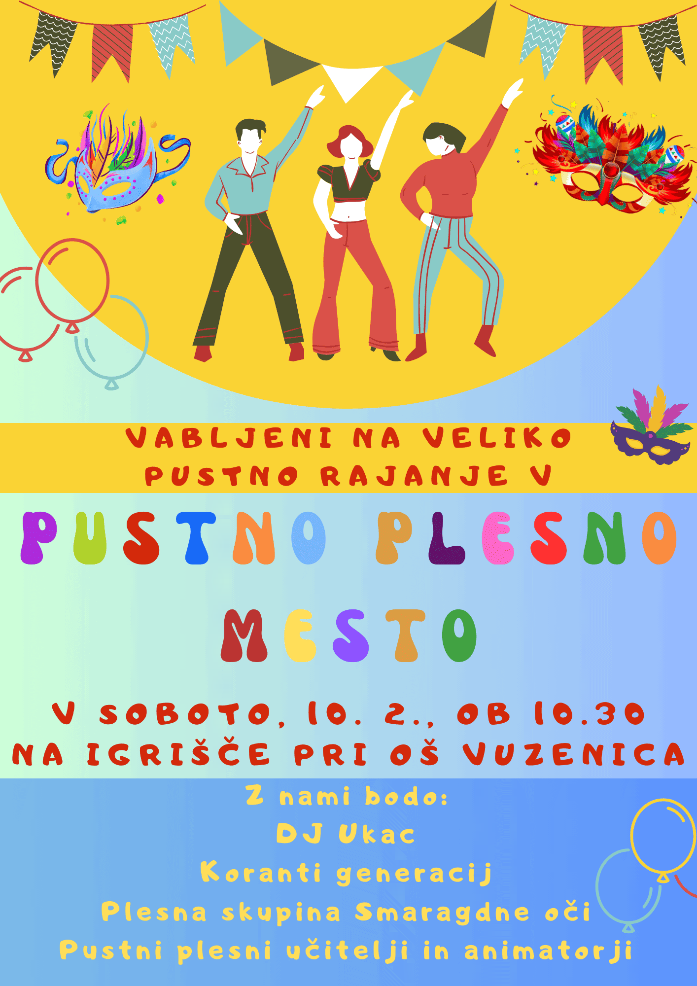 V Vuzenici pripravljajo veselo pustno rajanje, oz. tokrat Pustno plesno mesto, ki se bo odvijalo to soboto, 10. februarja 2024, od 10.30 ure dalje.