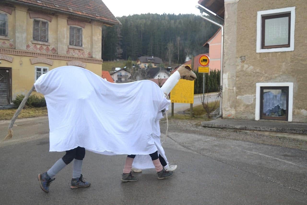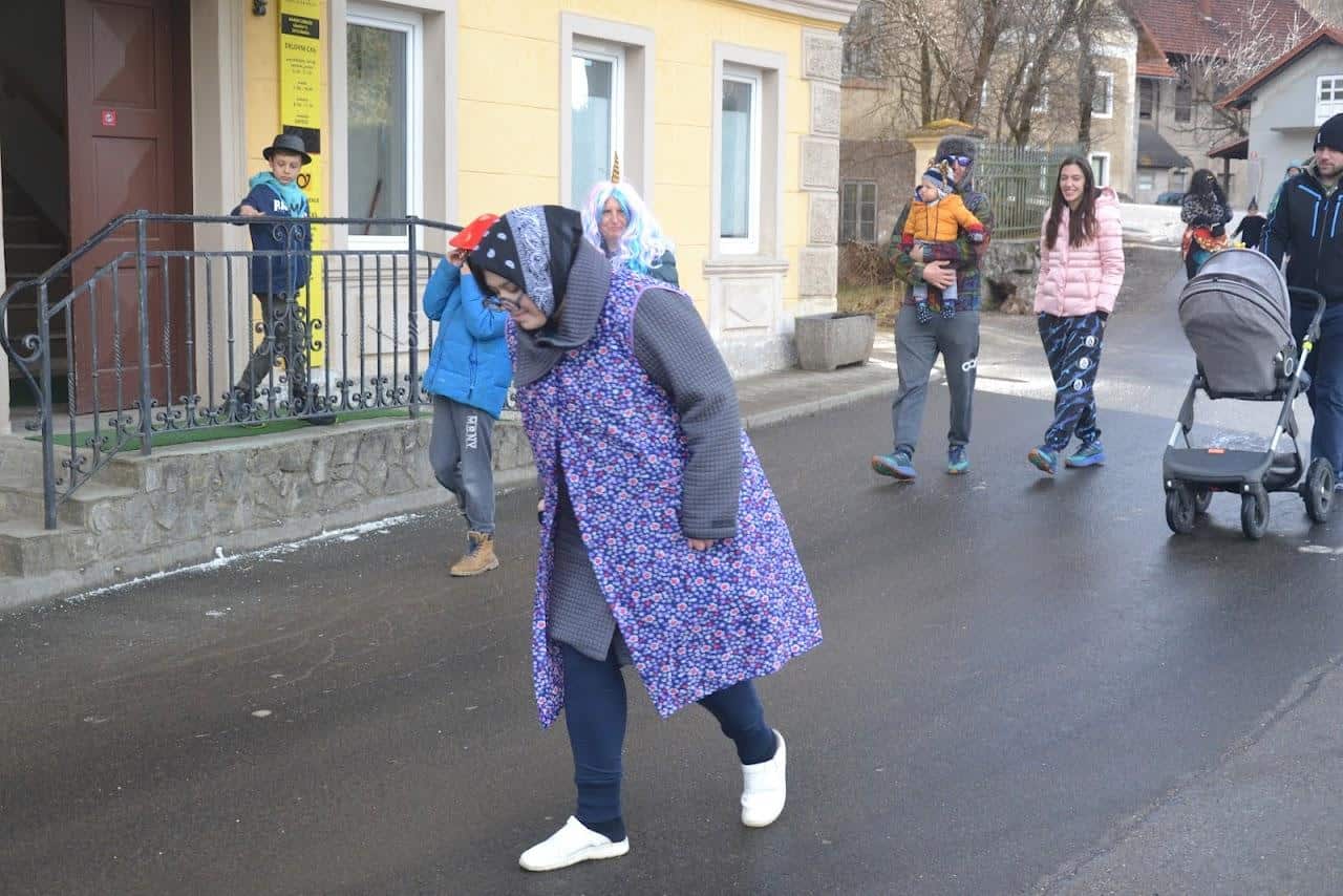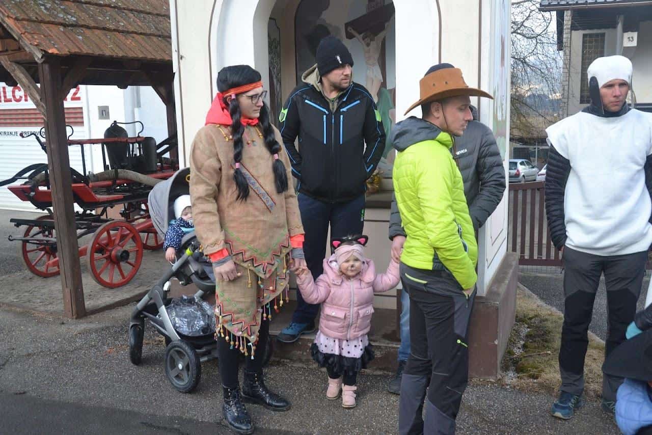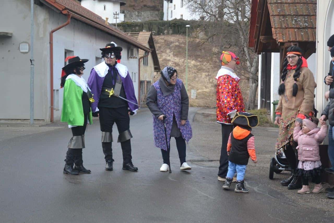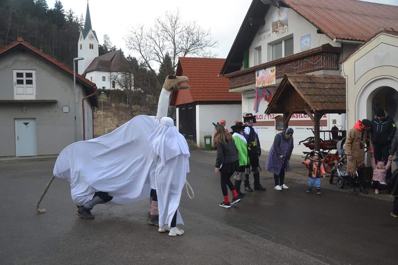 Naključno pa se je sredi vasi zbralo tudi nekaj maškar s spremstvom, ki so se za kamelo podale k “Bičivneku”.