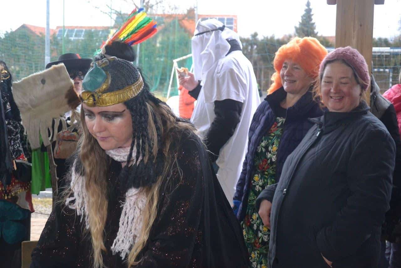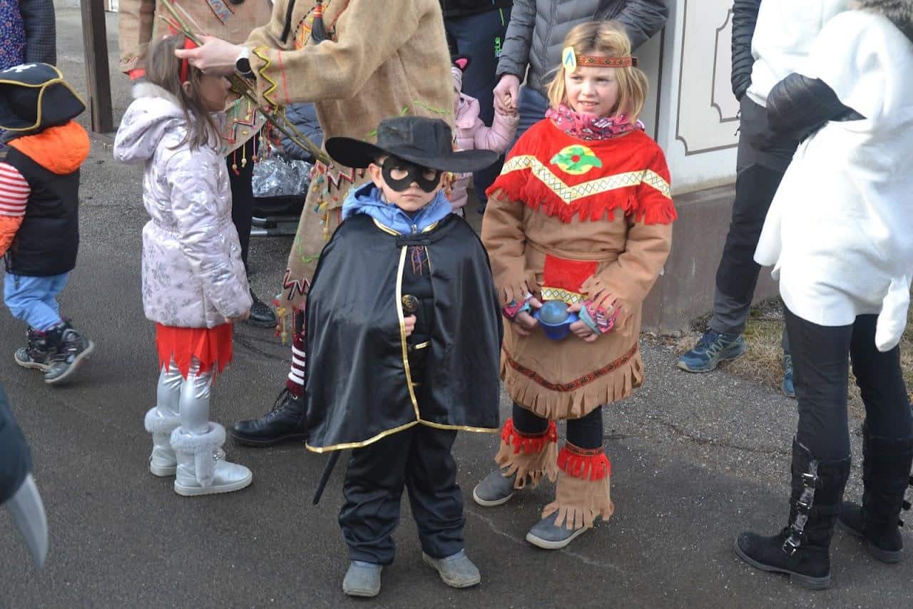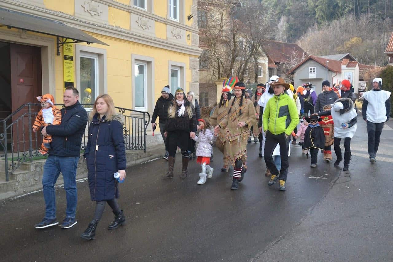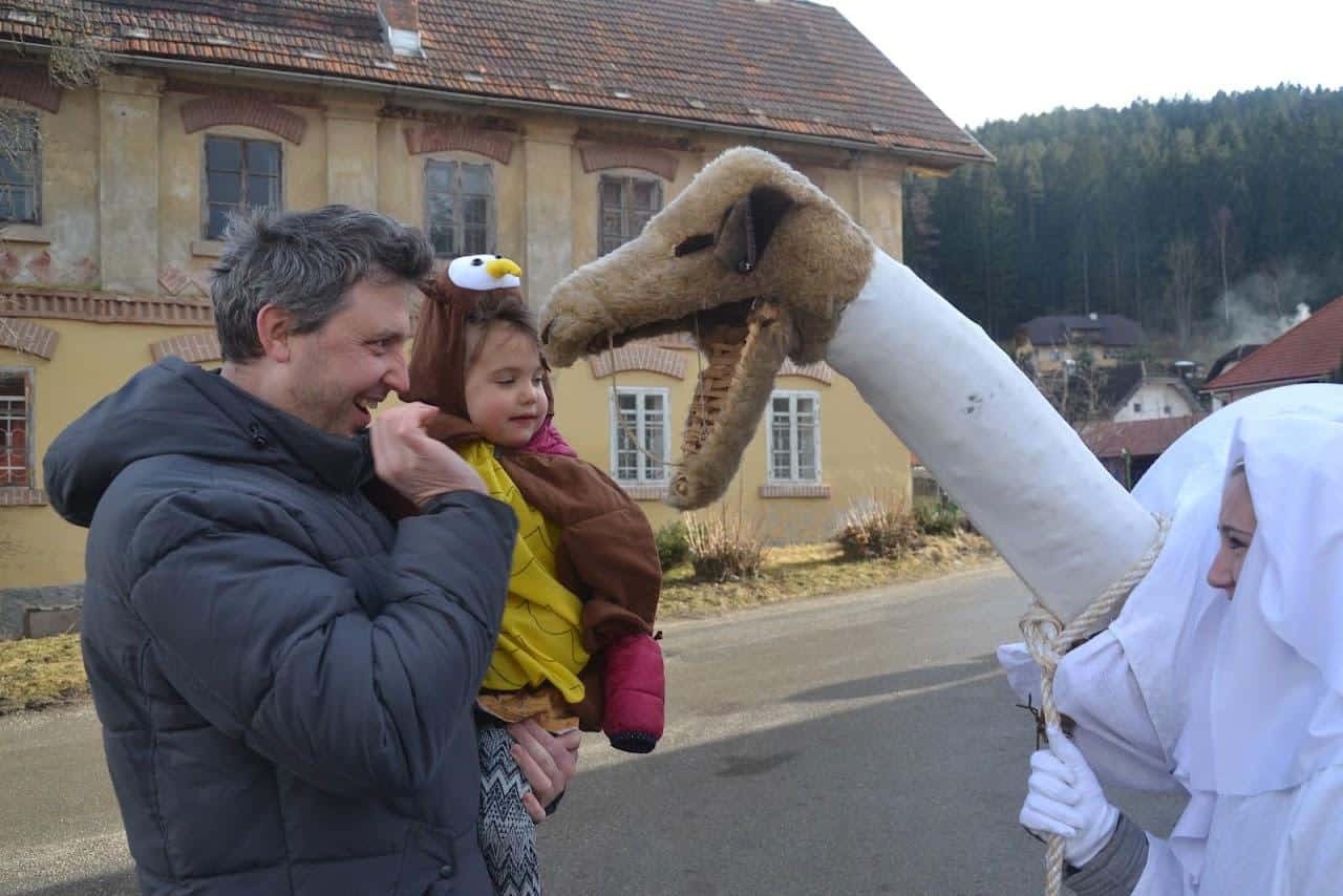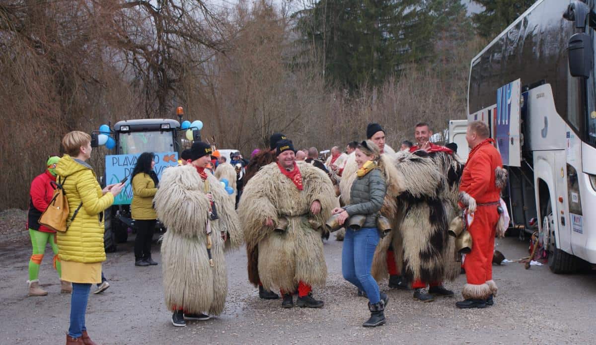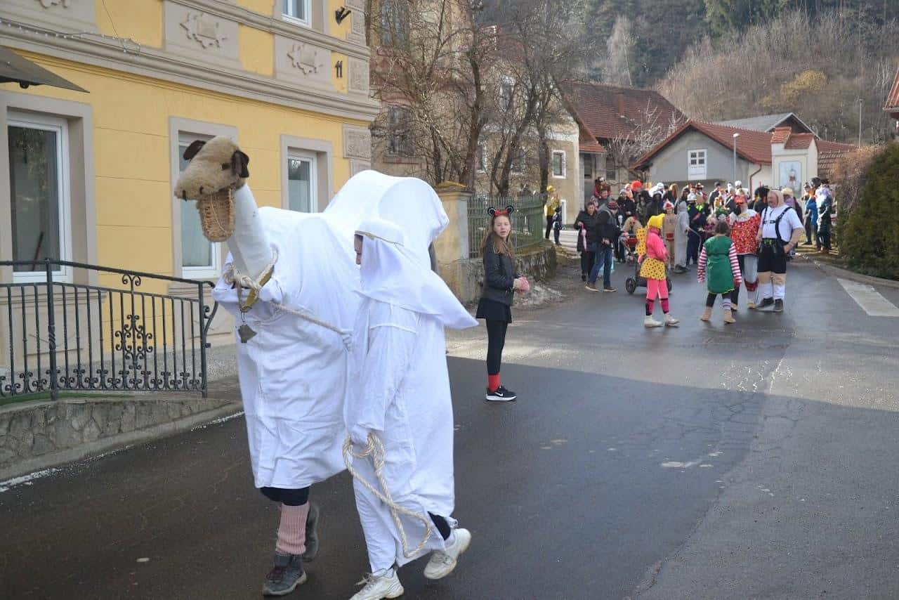 Naključno pa se je sredi vasi zbralo tudi nekaj maškar s spremstvom, ki so se za kamelo podale k “Bičivneku”.