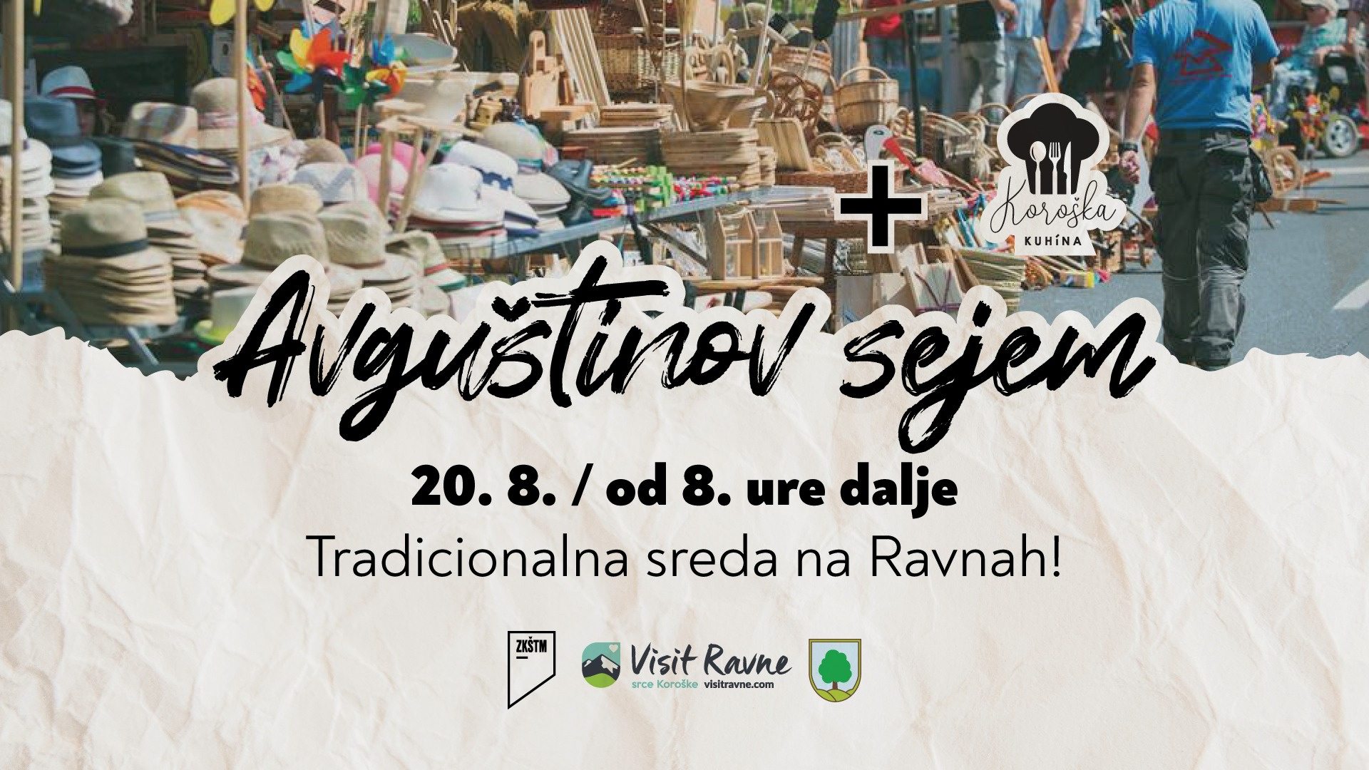 V sredo, 20. avgusta 2025, bodo Ravne znova zaživele v ritmu tradicije, druženja in dobrot. Že od 8. ure dalje bo ob uvozu proti DTK potekal Avguštinov sejem, kjer boste lahko izbirali med bogato ponudbo lokalnih izdelkov, svežega sadja in zelenjave, ročnih del, unikatnih izdelkov ter raznovrstnih dobrot. Sejem je odlična priložnost za podporo domačim pridelovalcem in obrtnikom ter za srečanje z znanci in prijatelji.