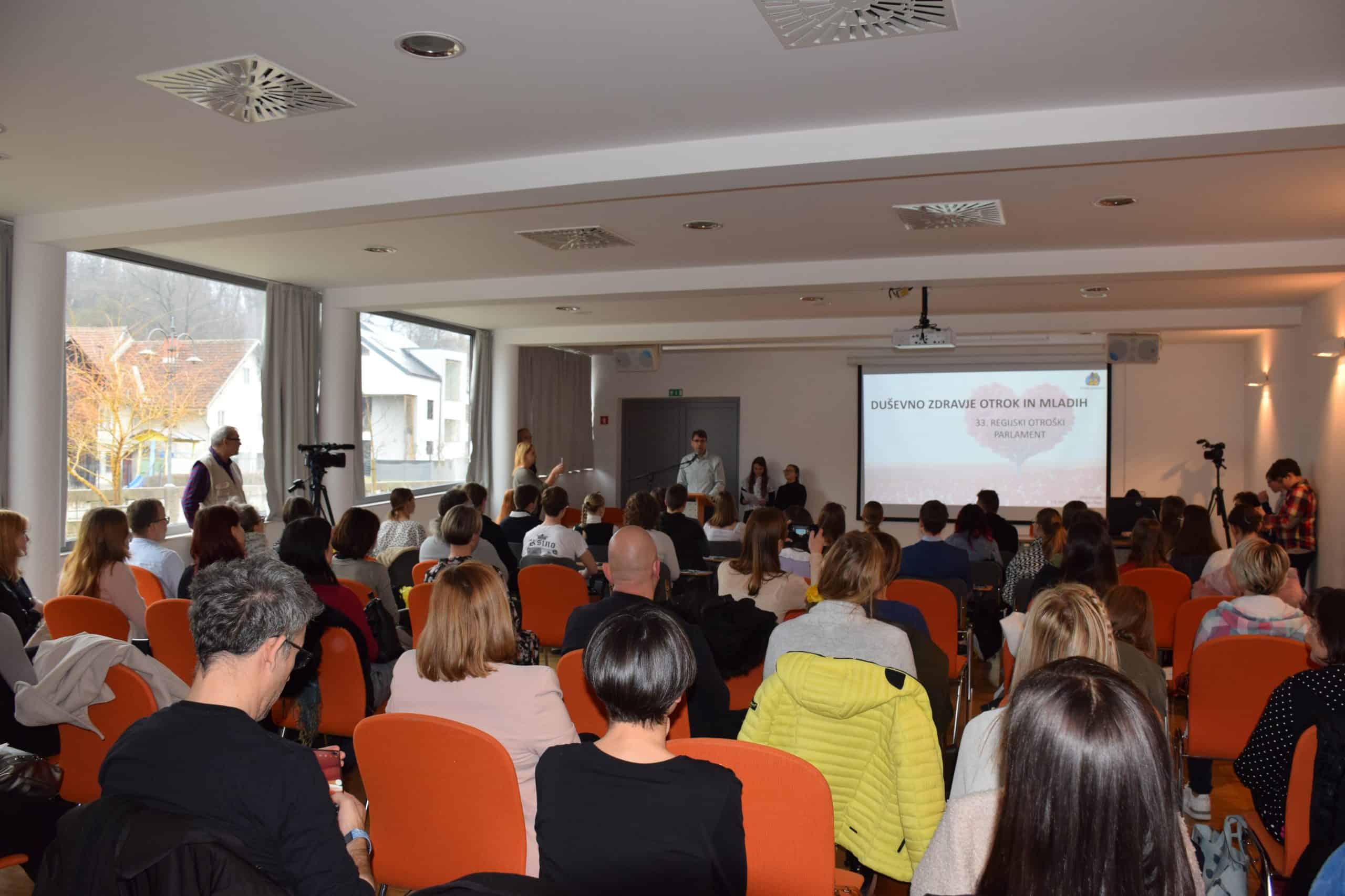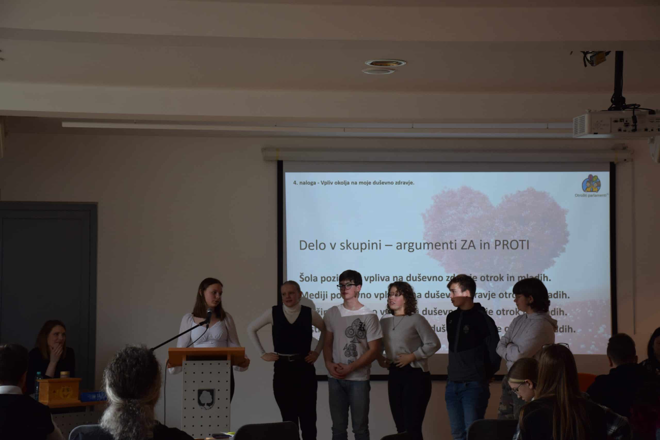 Med mladi parlamentarci je pogovor tekel na temo Duševno zdravje otrok in mladih. Udeležilo se ga je 23 otrok in njihovi mentorji.
