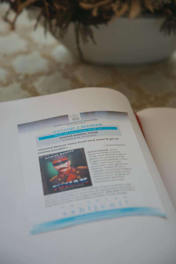 Andraž Babšek, avtor zgodovinskega romana Junak, sicer ljubitelj knjig in glasbe, je predstavil svoj pogled na dogajanje v času velike vojne in po njej, predvsem v času generala Maistra.