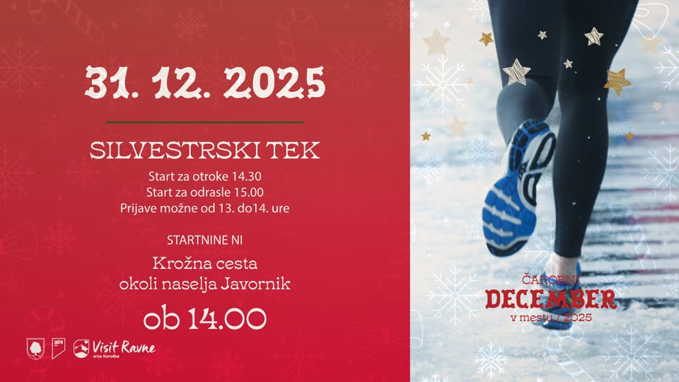 V okviru dogodkov Čarobnega decembra v mestu se bodo tekači tudi letos spopadli na silvestrskem teku. Na tradicionalni tek, letos že 32. zapovrstjo, se bodo tekači podali v sredo, 31. decembra 2025, na Ravnah na Koroškem.