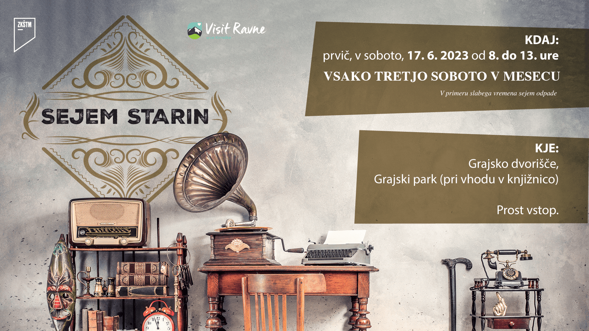 V soboto, 17. junija 2023, od 8. do 13 ure bo sejem potekal prvič in to na Grajskem dvorišču - Grajski park (pri vhodu v knjižnico).