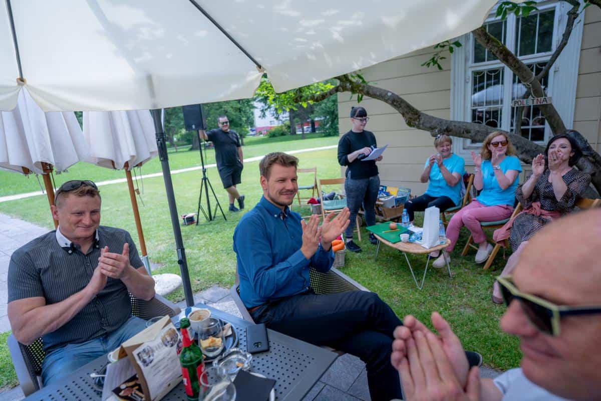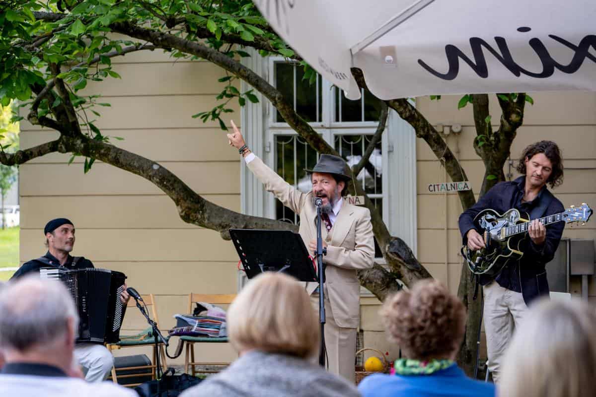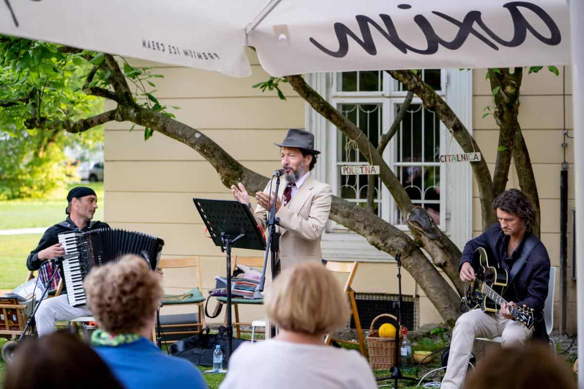 Večer na grajskem vrtu je številno občinstvo začaral z glasbo in besedo. Izbrani odlomki iz del Josipa Jurčiča in Ivana Tavčarja, ki jih je odlično interpretiral vsestranski umetnik Matjaž Pikalo, so zaživeli v fascinatnih avtorskih skladbah Dua Andrej Ofak in Borut Mori.
