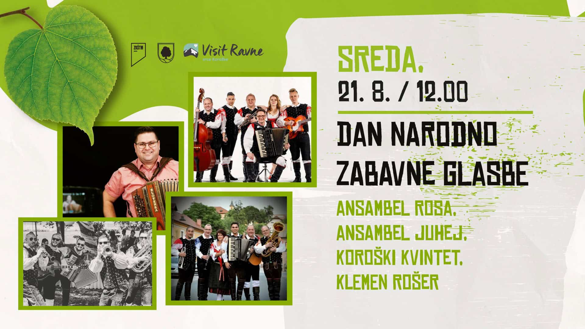 V okviru Ravenskih dni 2024 bo potekal tudi Dan narodno zabavne glasbe. Ta se bo odvijal v sredo, 21. avgusta 2024, ob 12. uri v velikem šotoru pred letnim bazenom Ravne.