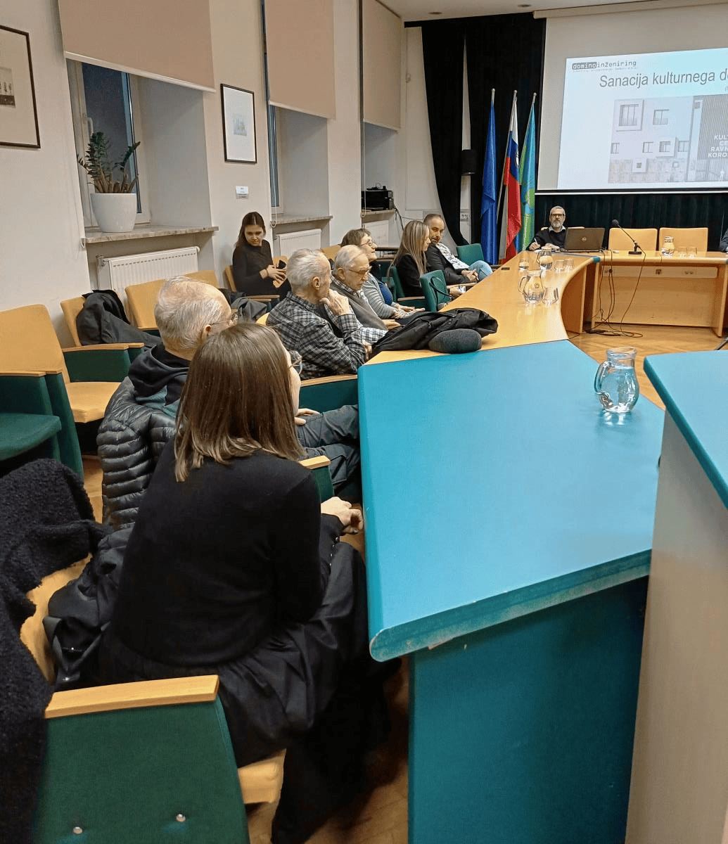 O popoplavni sanaciji in izvedbi projekta Kulturni center so v četrtek, 28. novembra 2024 v sejni sobi Občine Ravne na Koroškem prisluhnili dr. Tomažu Roženu, županu Občine Ravne na Koroškem in Roku Polesu, univ. dipl. inž. arh., avtorju arhitekture.