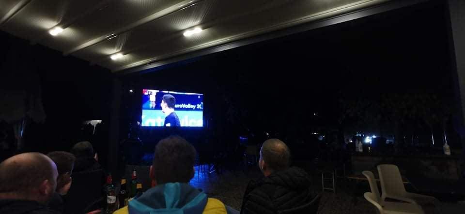 Navijači, ki so se zbrali pod streho in dežniki na terasi DTK, pričakujejo zmago slovenskih odbojkarjev. Navijač Boštjan je menil, da ekipa Italije ne bo močnejša od slovenske reprezentance in da letos "bo zlata". "Tekmo bo naporna, ampak pričakujem zmago. V tretje gre rado," je za STA dejal navijač Jože. "Igrajo s srcem," je ocenil.