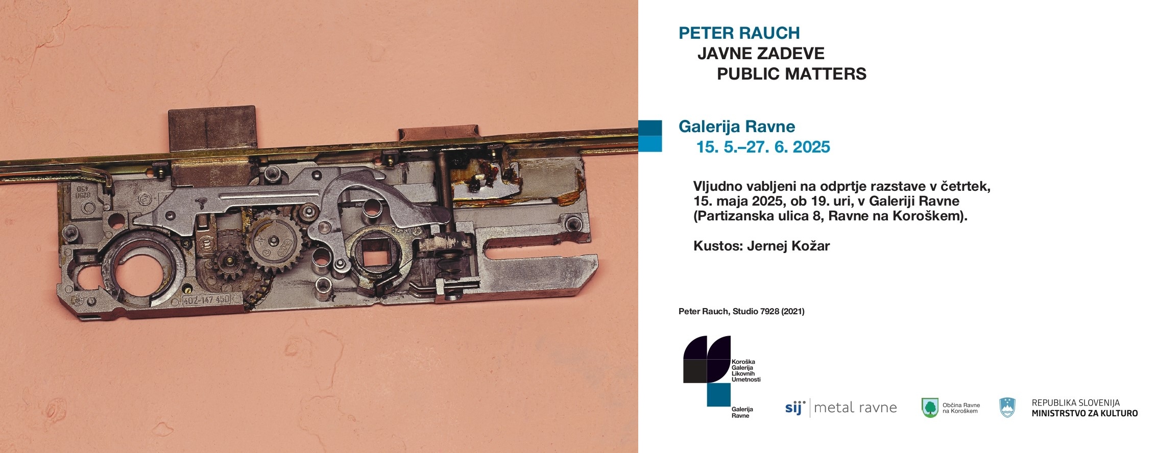 Razstava Javne zadeve / Public Matters odpira vprašanje javnega – ne kot prostora soglasja ali pripadnosti, temveč kot režima vidnega. Avtor Peter Rauch skozi postavitev raziskuje pomen »javnega« kot nečesa, kar po eni strani obeta jasnost in transparentnost, po drugi pa izključuje in marginalizira vse, kar odstopa od dominantnih politik skupnosti in identitet.