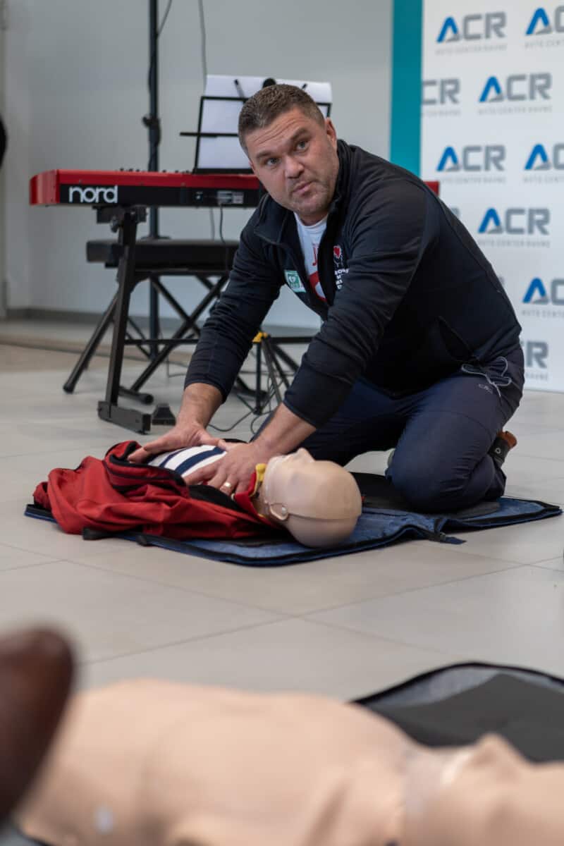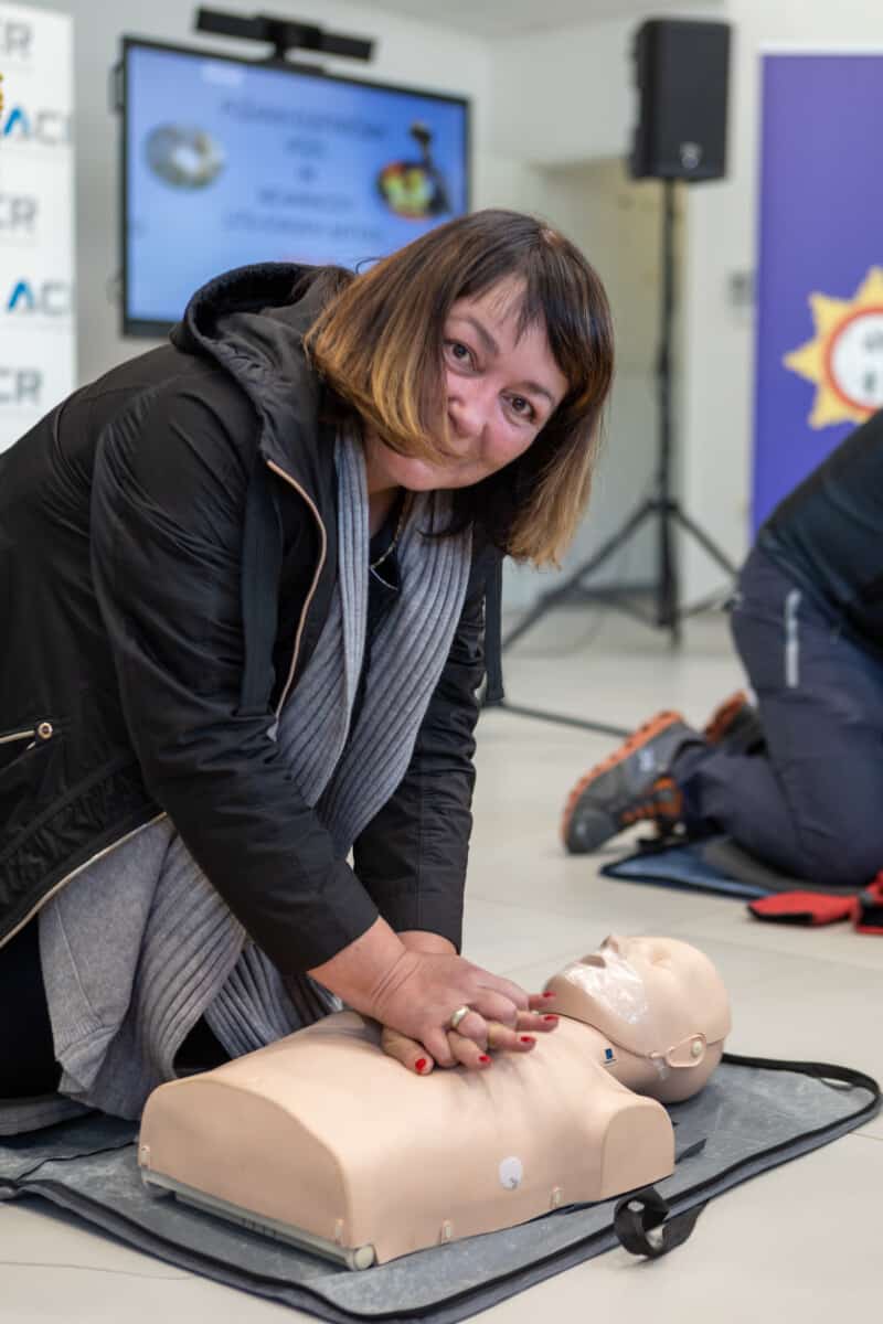 Primož Krajnc, član Koronarnega kluba Mežiške doline, je udeležencem predstavil postopek oživljanja z defibrilatorjem, na lutki pa so se učili tudi prisotni. »Temeljni postopki oživljanja in uporaba defibrilatorja sta ključnega pomena za reševanje življenj, v medijih pa vseeno premalo izpostavljena,« je dejal Krajnc in pohvalil organizatorja, ki sta tako pomembno temo umestila v današnji dogodek. »Vsak dan v Sloveniji doživi srčni zastoj 10 ljudi. Uspešnost je med 11 in 12 % – da se vrnejo v življenje enaki, kot so bili prej.«