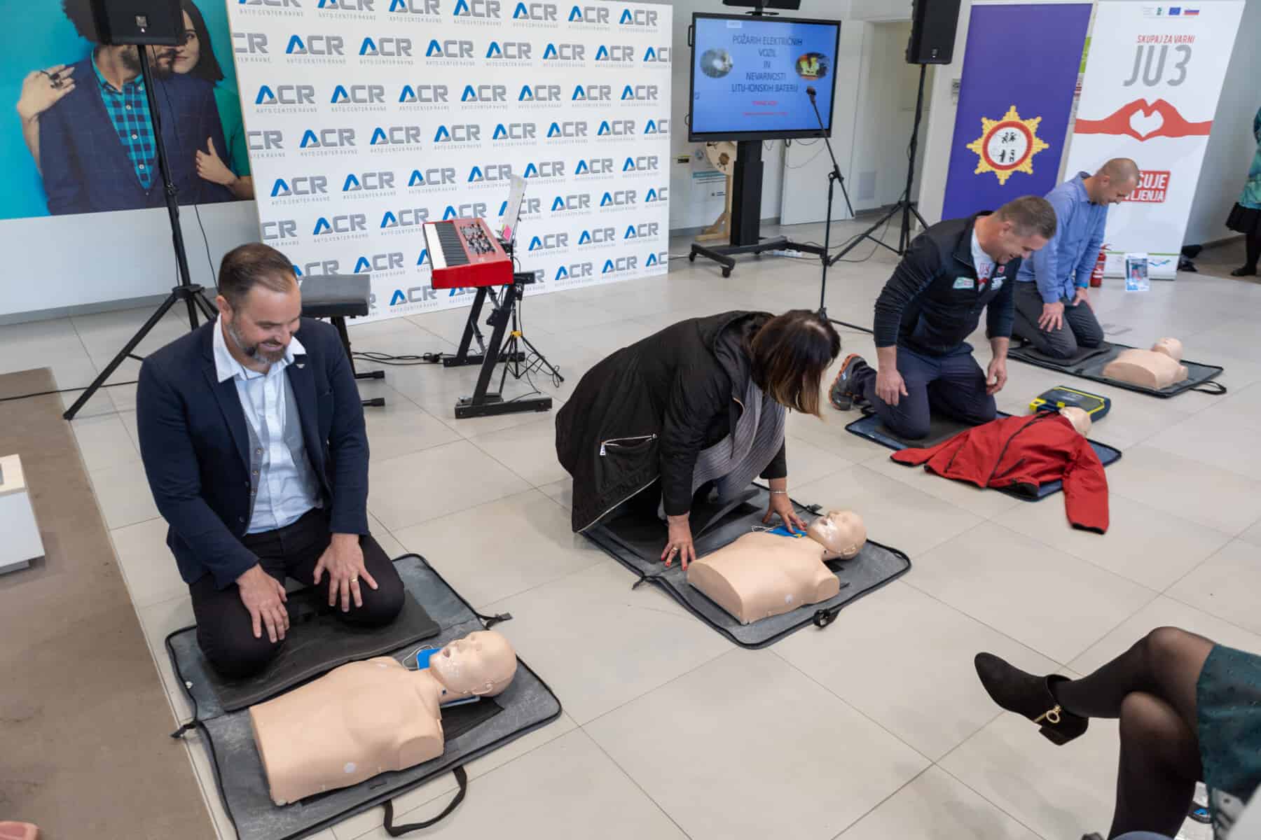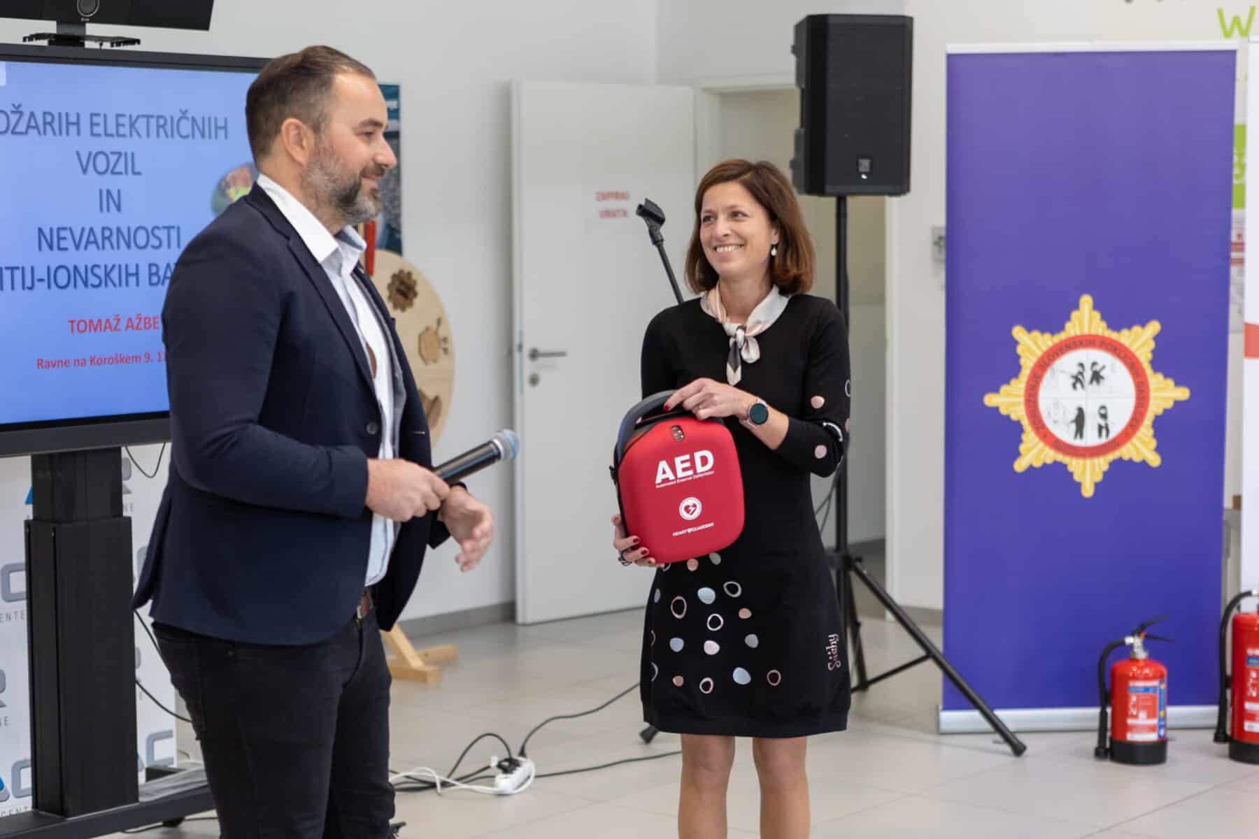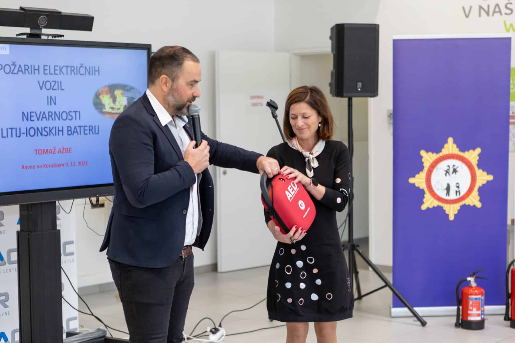 Avto center Ravne je skupaj z Združenjem slovenskih poklicnih gasilcev danes organiziralo pomemben izobraževalni dogodek na temo varnega ravnanja ob požaru baterij. Poleg poučnega predavanja so bili slušatelji deležni prikaza gašenja različno napolnjenih baterij, prikaza oživljanja z defibrilatorjem in možnost preizkusa oz. učenja na lutki, prikaza gospodinjske plinske eksplozije in gašenja, predstavljena pa je bila tudi varnost e-vozil. Dogodek je zaokrožila dobrodelna nota – podjetje Avto center Ravne je namreč podarilo kar dva defibrilatorja, ki bosta v uporabi v Občini Ravne na Koroškem – pri novem Vrtcu Ravne na Koroškem ter na sedežu podjetja Avto center Ravne.