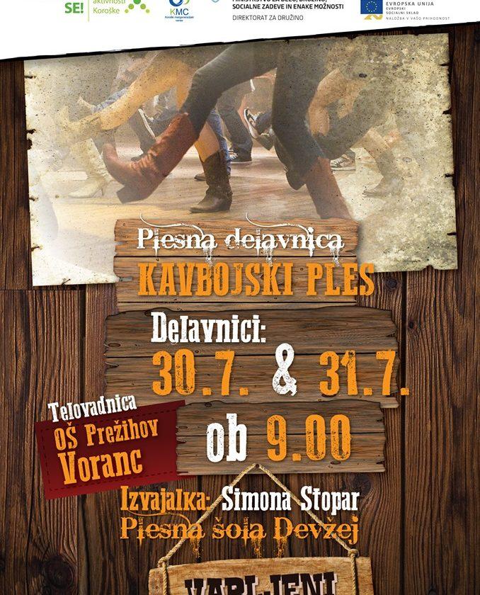 Če bi se radi naučili plesati kavbojski ples, vas Country Folk & Blues Koroška v sodelovanju s plesno šolo Devžej vabijo na brezplačni delavnici, ki bosta v torek, 30. in v sredo, 31. julija 2019, ob 9.uri v telovadnici Osnovne šole Prežihovega Voranca. Kavbojski ples vas bo naučila plesalka Simona Stopar iz plesne šole Devžej. Delavnica je namenjena vsem generacijam.
