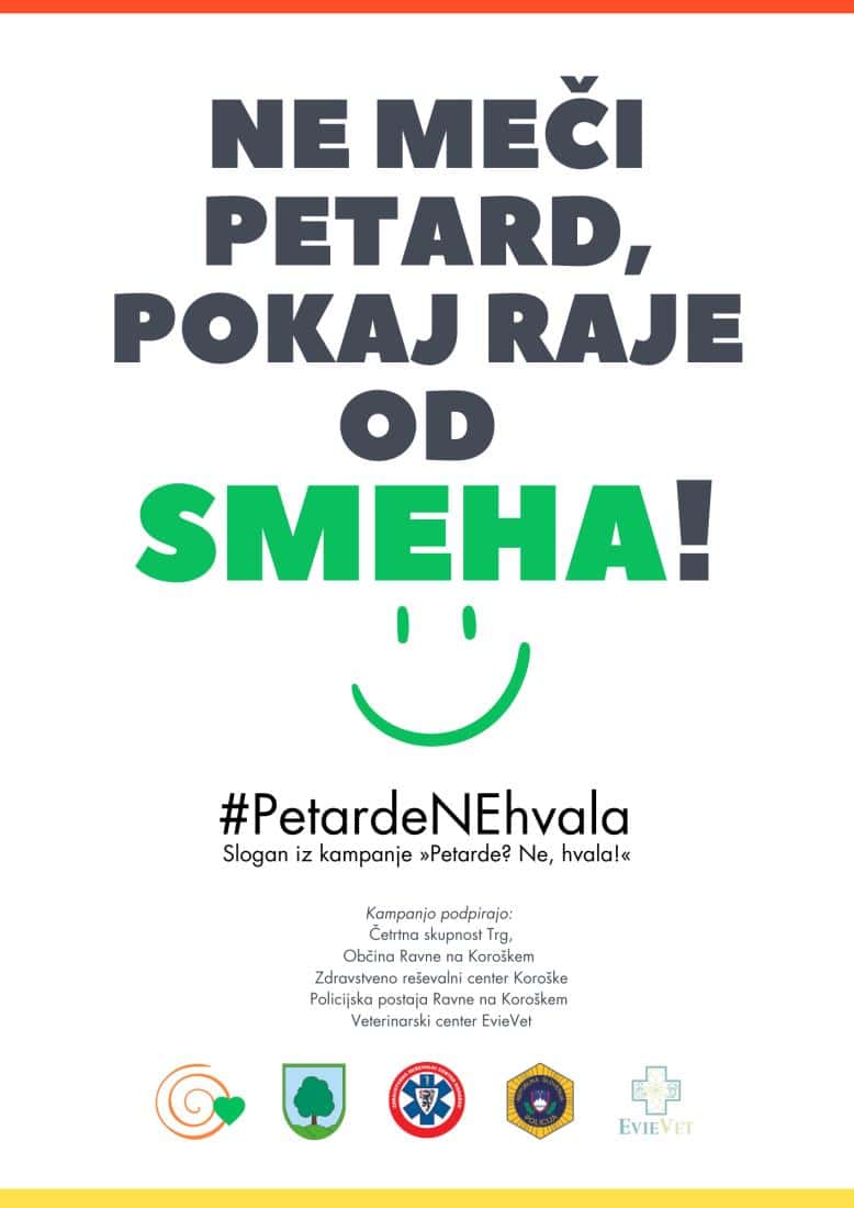 Na pobudo Zdravstveno reševalnega centra Koroške in direktorice Marijane Kašnik je Občina Ravne na Koroškem, skupaj s Četrtno skupnostjo Trg in pristojnimi službami – Policijsko postajo Ravne ter EvieVet Veterinarskim centrom za pse in mačke, pristopila k akciji z naslovom: Ne meči petard, pokaj raje od smeha!