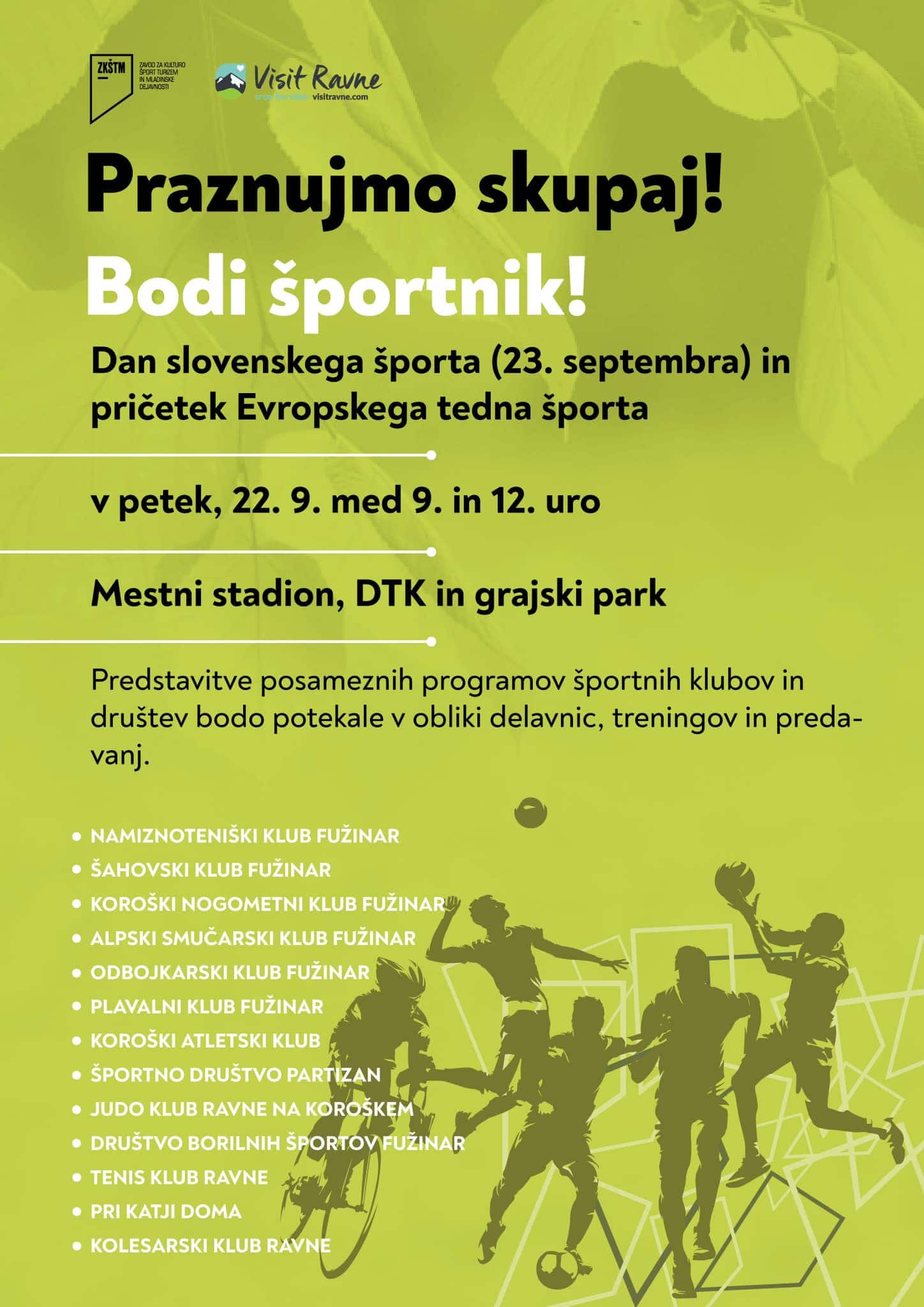 Dan slovenskega športa, ki ga sicer obeležujemo 23. septembra, bodo na Ravnah na Koroškem proslavili že jutri, 22. septembra 2023, saj nas na Ravnah čaka pestro športno dogajanje.