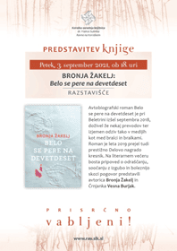 Prav tako bo v petek, 3. september 2021, ob 18:00 v Koroški osrednja knjižnica v Razstavišču potekala predstavitev Bronje Žakelj: Belo se pere na devetdeset.