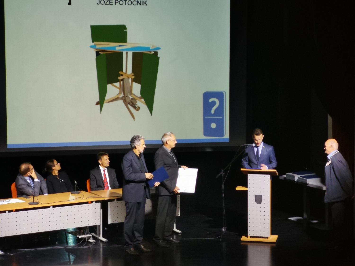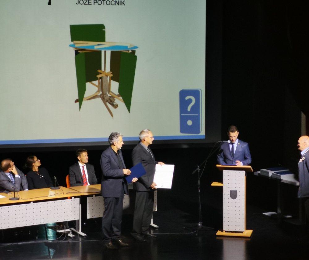 Nagrajenec - inovator: JOŽE POTOČNIK. Naslov inovacije: Inovacija za vertikalno vetrno elektrarno. Inovator z dolgoletnimi izkušnjami je le-te združil s širokim naborom znanja različnih področij ter z vztrajnimi raziskovalnimi željami in z veseljem do odkrivanja novega vse to povezal v model nove rešitve – v vertikalno vetrno elektrarno.