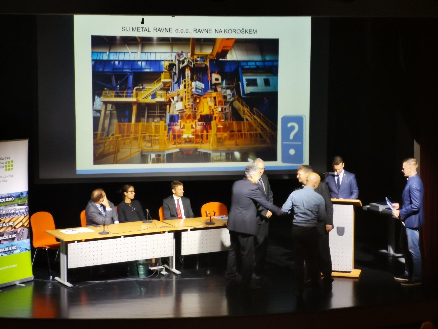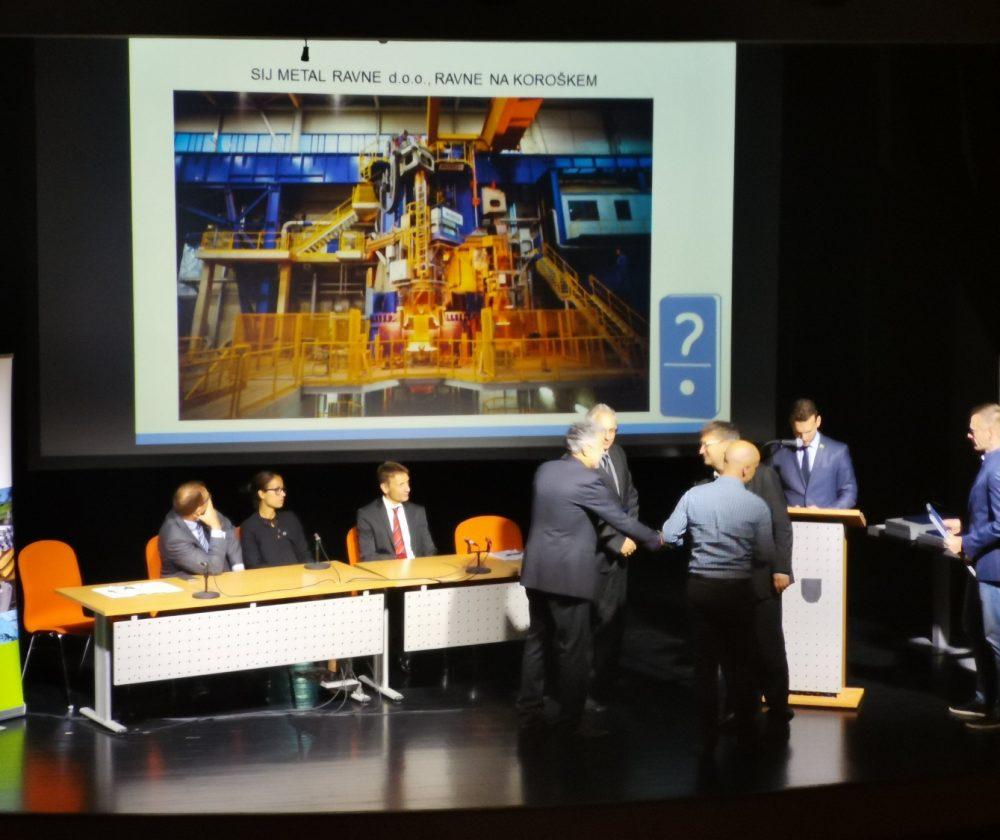 Nagrajenec: SIJ RAVNE SYSTEMS d.o.o., RAVNE NA KOROŠKEM. Naslov inovacije: Transportni sistem za manipulacijo aluminijastih bram. Inovatorji: Nejc Gorinšek, Igor Vušnik, Janez Orešnik, Tomaž Vogel, Anton Štern. Inovativni sistem sledi trendom avtomatizacije na področju težke industrije. Inovacijska razvojna ekipa je poiskala v celoti avtomatizirane rešitve, pri čemer gre za prvo tovrstno transportno linijo v Sloveniji in na širšem območju Evrope, ki ima integrirane operacije tehtanja in označevanja izdelkov, ter obenem z visokimi standardi varnega delovanja. Inovacijsko ekipo v podjetju sestavljajo strokovnjaki s področij strojništva (proizvodnja, design, konstruiranje ipd.), elektrotehnike in mehatronike (senzorska tehnika, elektrika), informatike (povezljivost, varnostni protokoli), projektnega vodenja.