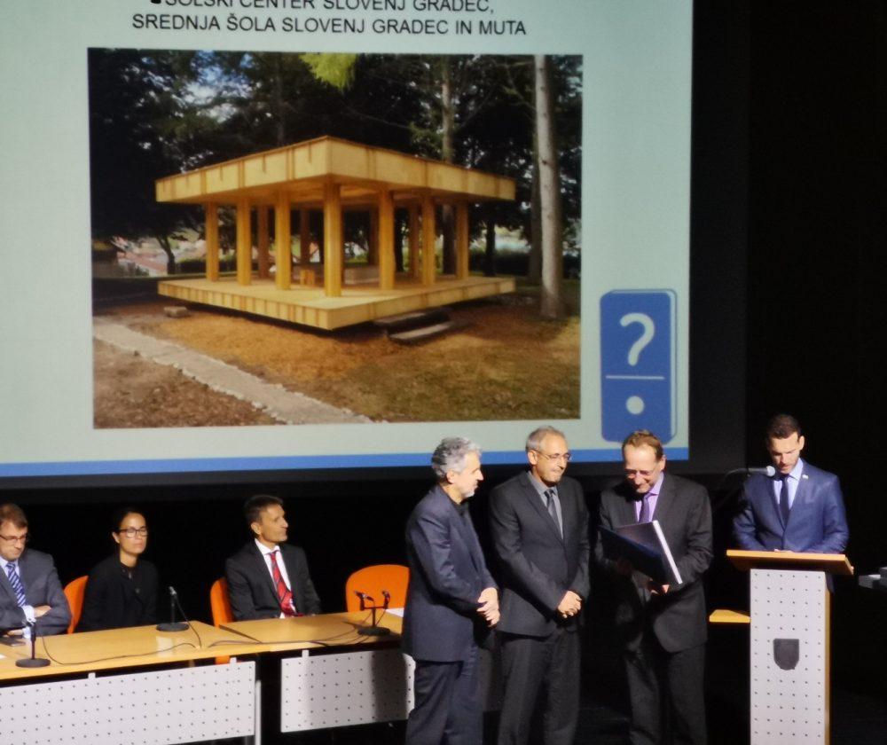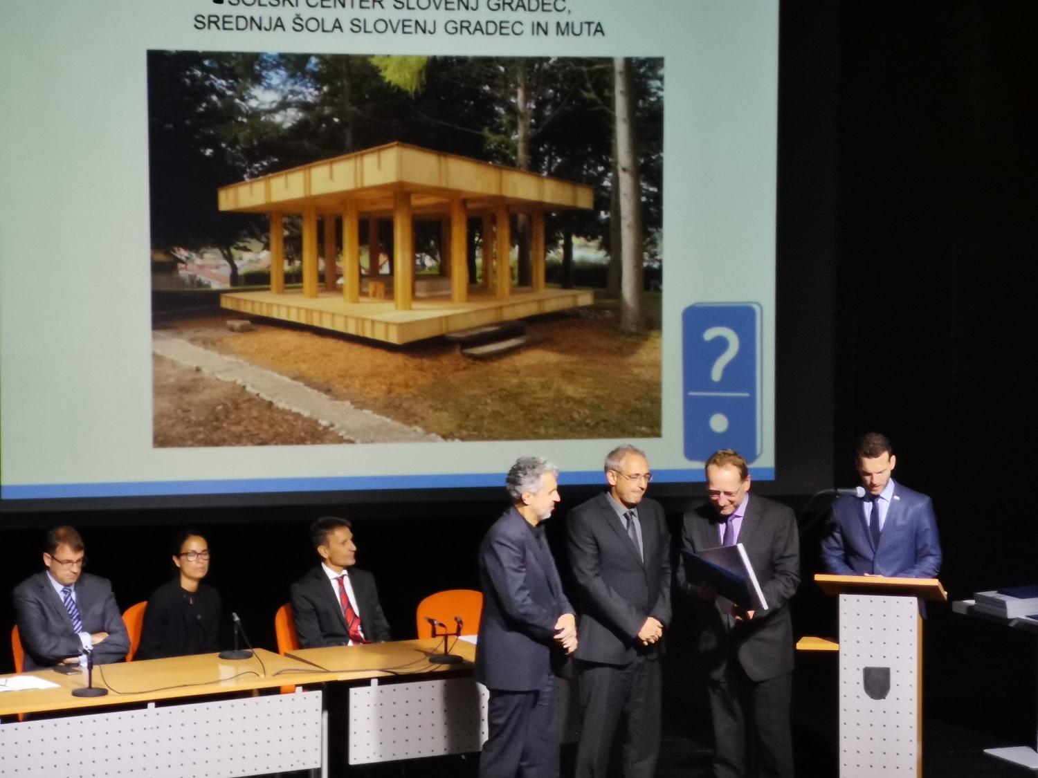 Nagrajenec: ŠOLSKI CENTER SLOVENJ GRADEC, SREDNJA ŠOLA SLOVENJ GRADEC IN MUTA. Naslov inovacije: Paviljon prijateljstva. Inovatorji: Irenja Bevcl, Andrej Otto, Štefan Pirnat, Milan Strmčnik. Paviljon prijateljstva, izdelan v lesarski srednješolski delavnici in postavljen v prijetnem okolju sredi dreves, je prvi japonski arhitekturni objekt v Sloveniji. Večnamenski prostor je rezultat mednarodnega sodelovanja dijakov lesarskih programov Srednje šole Slovenj Gradec in Muta s študenti ljubljanske Fakultete za arhitekturo ter študentov tokijske univerze Keio. V celotni ekipi je sodelovalo 56 inovativnih posameznikov.