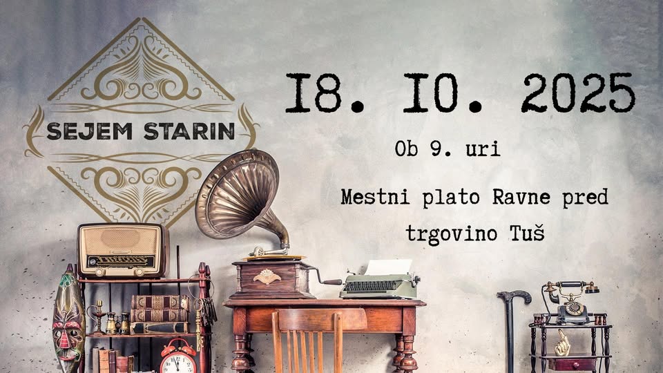 Tretja sobota v mesecu je na Mestnem platoju na Ravnah rezervirana za sejem starin. To zdaj že dobro vedo vsi ljubitelji preteklosti in zanimivih kosov. Tokrat bo tradicionalni sejem starin potekal v soboto, 18. oktobra 2025, s pričetkom ob 9. uri.