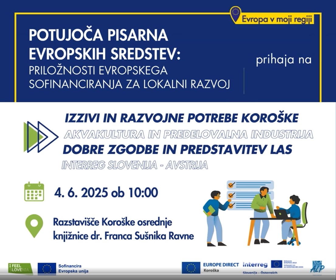 Ne zamudite ekskluzivnega dogodka na Koroškem in soustvarjajte razvoj regije s pomočjo evropskih priložnosti. Še pravi čas se prijavite na e-poštni naslov potujocapisarna.mkrr@gov.si