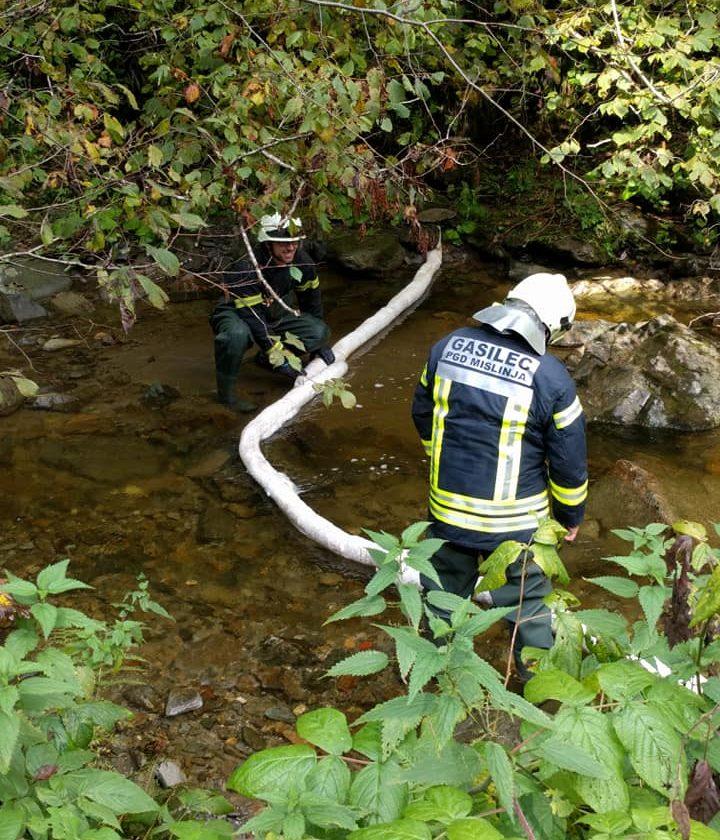 Ob 8.06 so bili na reki Mislinji v Občini Mislinja, opaženi temni madeži. Posredovali so gasilci PGD Slovenj Gradec in PGD Mislinja, ki so na vodo postavili vpojna črevesa in vzeli več vzorcev vode, ki so jih predali enoti z mobilnim ekološkim laboratorijem.