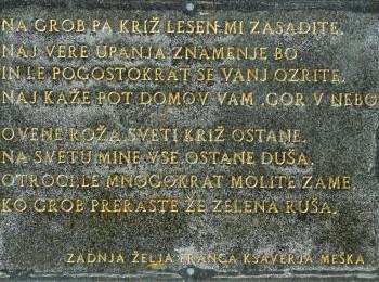V njegov spomin krajani VS Sele-Vrhe pogosto zastavijo svoj korak po Meškovi poti, ki ga je v spremstvu faranov mnogokrat vodila od cerkve sv. Roka do sv. Neže na Vrhah. Skozi svoja literarna dela in z verzi na nagrobnem kamnu vse, ki se ob njem ustavljajo, tudi danes živo nagovarja.