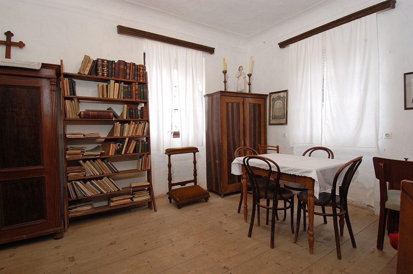 Ob vstopu v župnišče na Selah nas pogled na črno-bele fotografije na stenah popeljejo nazaj v tiste čase, ko si ga lahko predstavljamo, kako sedi v svoji sobi, ob mizi pri oknu, in piše. Morda svoja pisma prijateljem, svoje spise, zapise v župnijsko kroniko ali pa pridigo za mašo. Njegovo preprostost izražajo lepo ohranjeni osebni predmeti in primeri rokopisov, ki so v sobi vidni še danes.