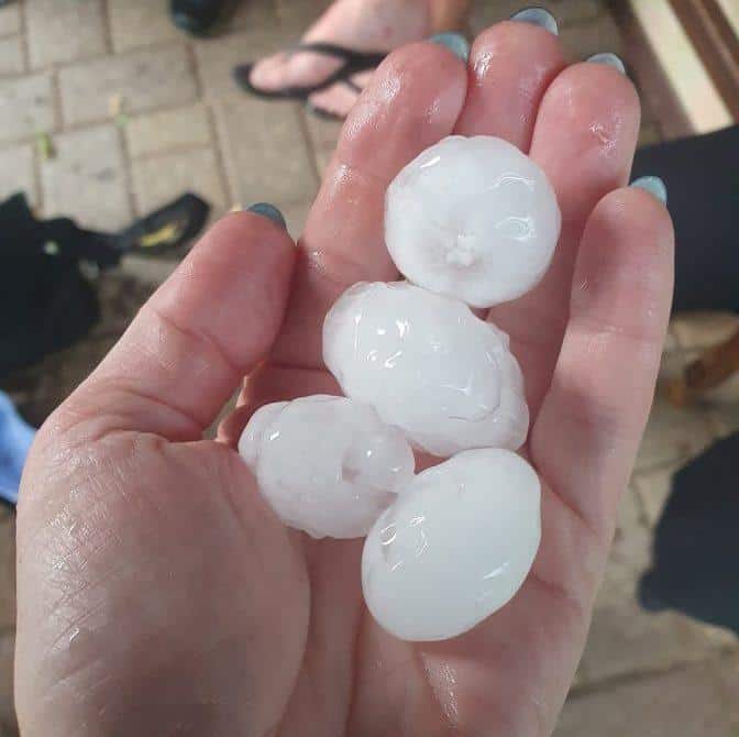 Posamezne kraje je prizadela tudi toča, ki je glede na objave na družbenih omrežjih klestila vse od Majšperka do okolice Ptuja. O debelejši toči poročajo tudi z območja Vuzenice, Mute in Radelj ob Dravi. Približno deset minut je toča tolkla tudi na Brežiškem, kjer so sunki vetra lomili drevesa, iz kanalizacijskih jaškov je bruhala voda. Po besedah prebivalcev se je sredi neurja nad mestom zarisala tudi dvojna mavrica.